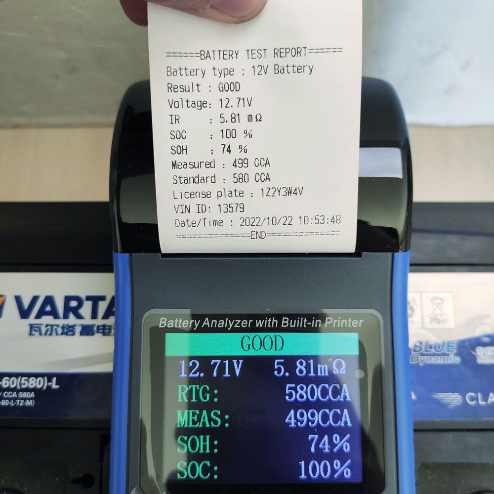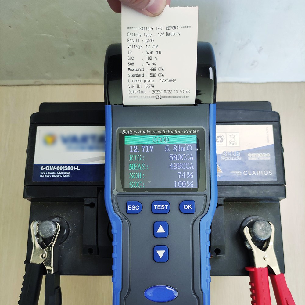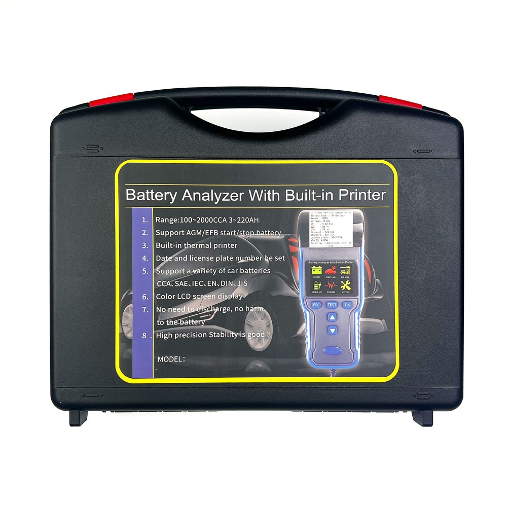 TM990A är en professionell batteritestare med inbyggd skrivare, perfekt för snabb och tillförlitlig testning av AGM-, EFB- och blybatterier. Testaren hanterar både 12V och 24V system, med kapacitet från 3 till 220 AH och ett mätområde på 100-2000 CCA. Den mäter även uppstartsbelastning, max arbetsbelastning samt erbjuder snabbmätning för effektiv felsökning.