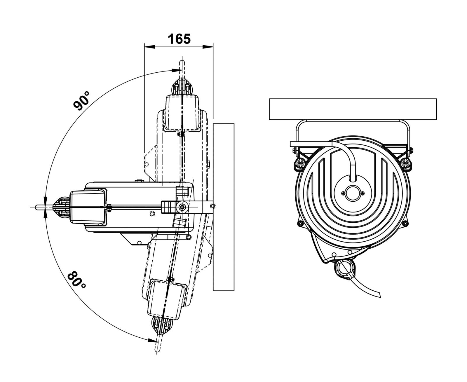 Kapslade vindor med pu-slang utrustade med returbroms för kontrollerad inrullning. Levereras med svängbart väggfäste.