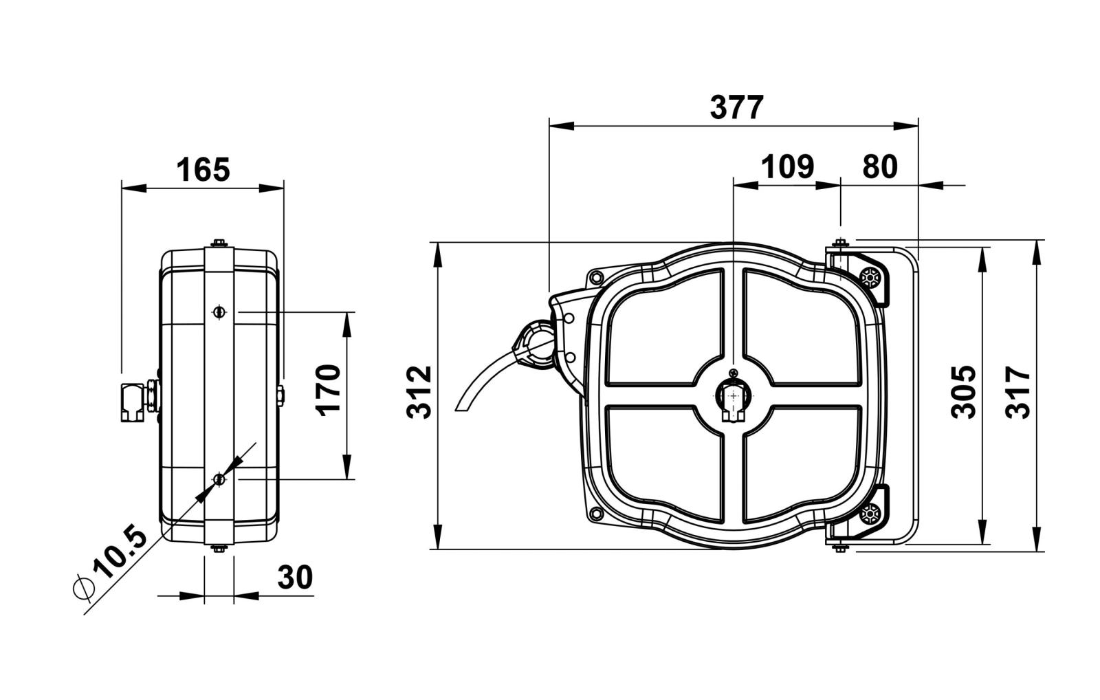 Slangvindorna är kapslade och tillverkade av stål. Slangen är av polyuretan och mjuk även vid låga temperaturer. De är utrustade med returfjäder. Vindorna levereras med svängbart väggfäste.