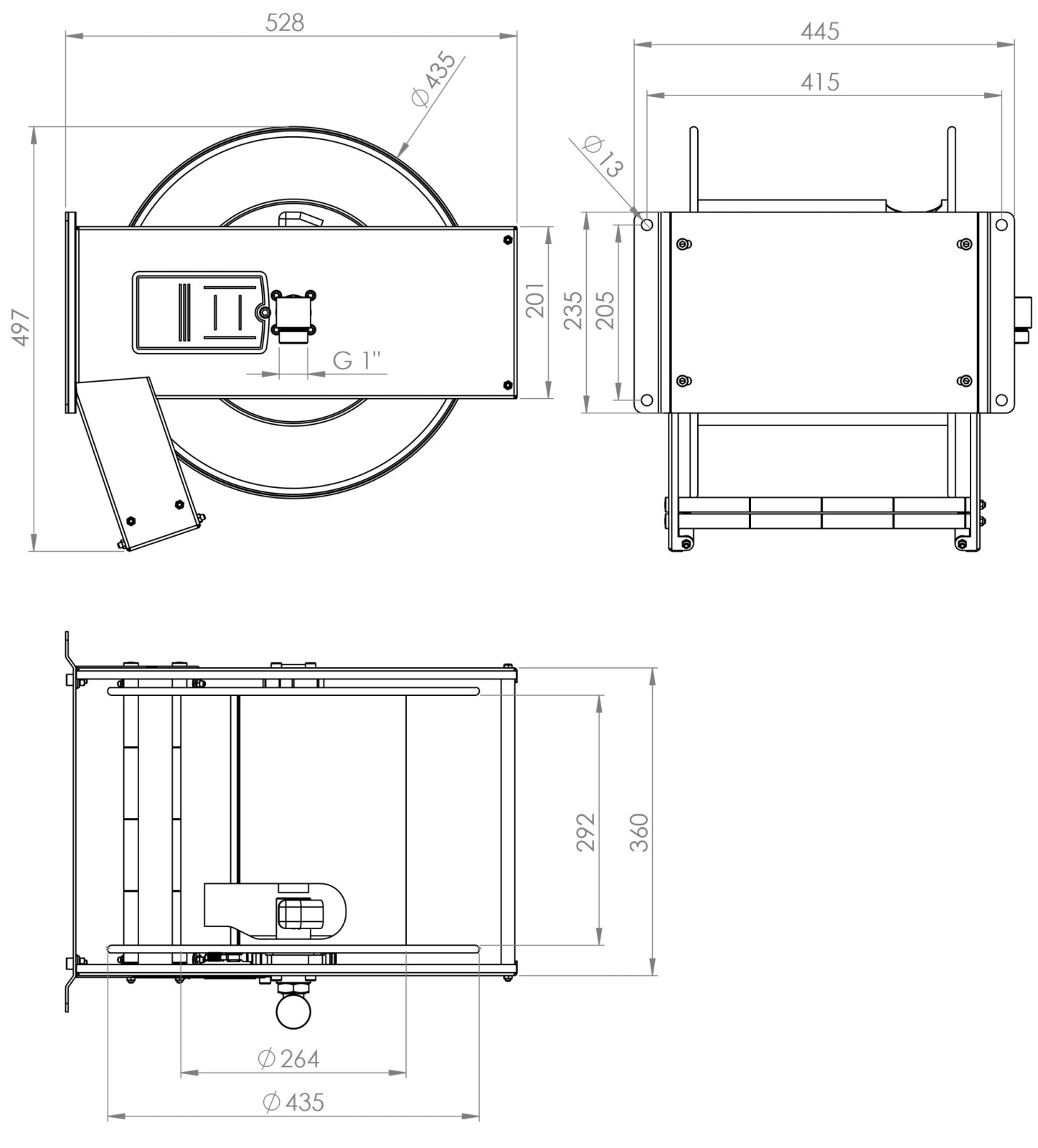 Automatisk återfjädrande slangvina. Levereras med slangstopp. Svirveln tål 150 °C.